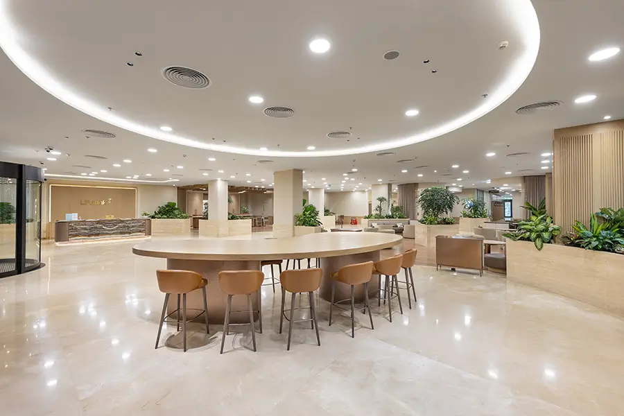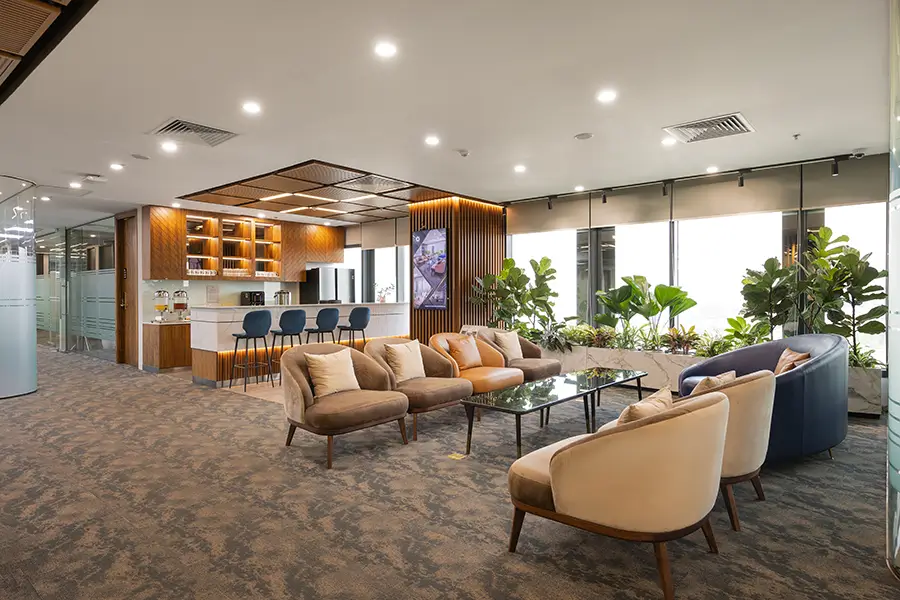 - Hệ thống tiện ích văn phòng toàn diện: khu pantry, lounge, khu vực chờ tiếp khách, sảnh đón sang trọng